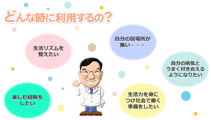 | 開所日 | 月曜から金曜日までの平日(土・日・祝日・年末年始はお休み) |